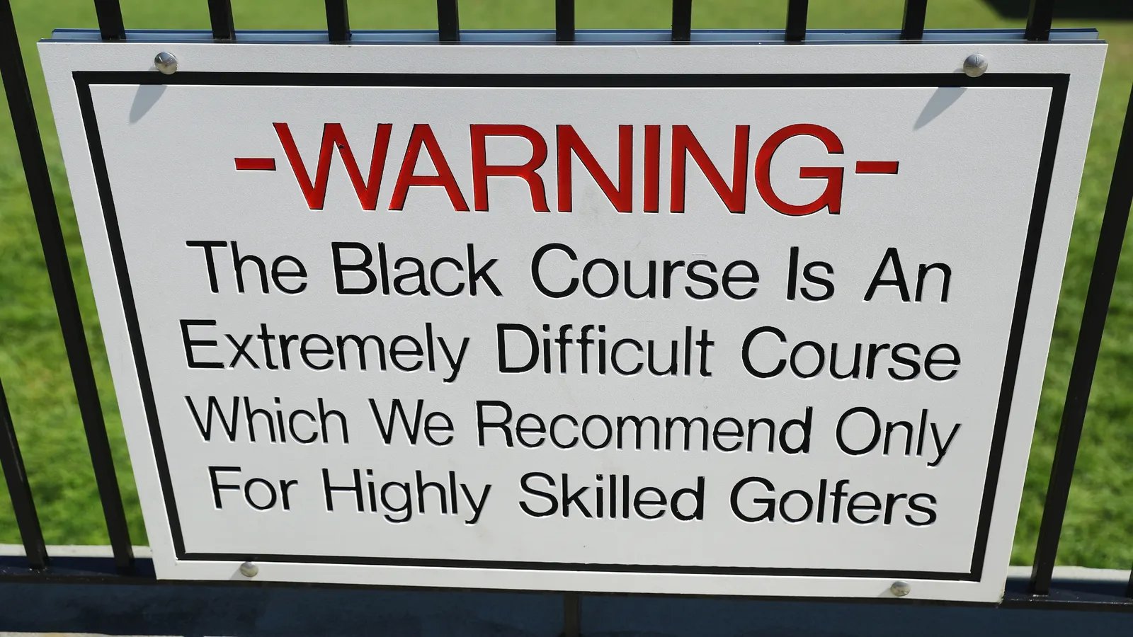 Ngay trước hố số 1, golfer sẽ bắt gặp tấm biển cảnh báo nổi tiếng: “Cảnh báo – Black Course là sân cực kỳ khó, chỉ khuyến nghị cho golfer có trình độ cao.”
