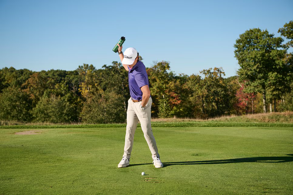 Một lỗi phổ biến khi đánh iron là người chơi ném tay và cánh tay xuống bóng ngay từ đỉnh backswing. Để sửa lỗi này, hãy cầm một chai nước đầy và mô phỏng cú downswing. Mục tiêu: khiến nước bắn ra muộn nhất có thể, thậm chí rơi xuống phía trước vị trí bóng. Khi “năng lượng” được giải phóng muộn, cơ thể và cánh tay buộc phải di chuyển đồng bộ, tạo nên cú đánh mạnh và đúng điểm rơi.