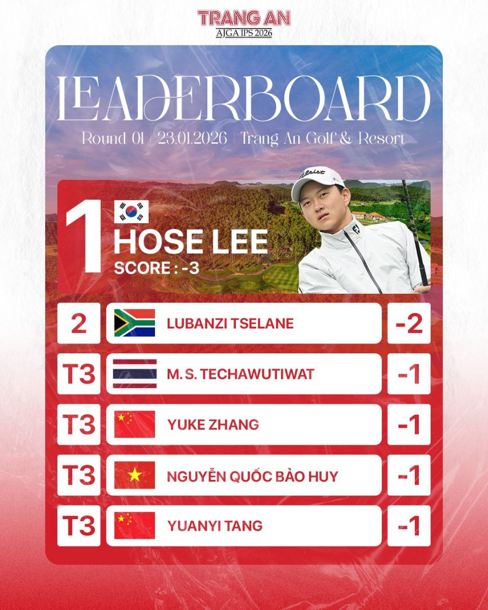 Vòng đấu mở màn của Trang An AJGA International Pathway Series 2026 đã khép lại trong bối cảnh thời tiết không thuận lợi tại Tràng An. Nhiệt độ xuống thấp kèm theo mặt sân ẩm do mưa những ngày trước đó đã tạo ra thử thách đáng kể cho các vận động viên. Trước điều kiện thi đấu khó khăn, Ban Trọng tài quyết định áp dụng luật Preferred Lies nhằm đảm bảo tính công bằng cho toàn bộ giải đấu.