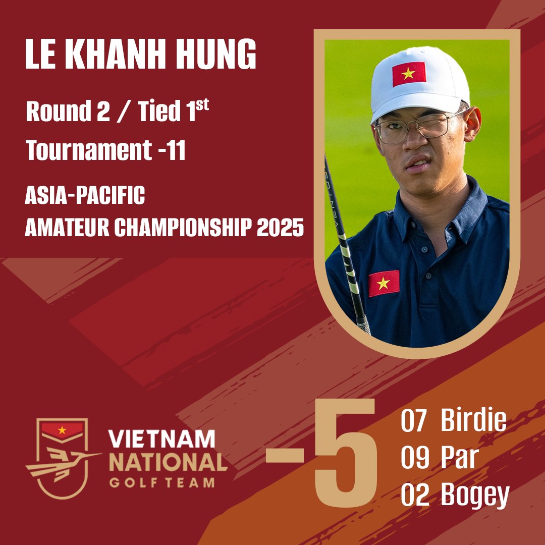 - Lê Khánh Hưng khởi đầu bùng nổ tại vòng 1 Asia-Pacific Amateur Championship 2025