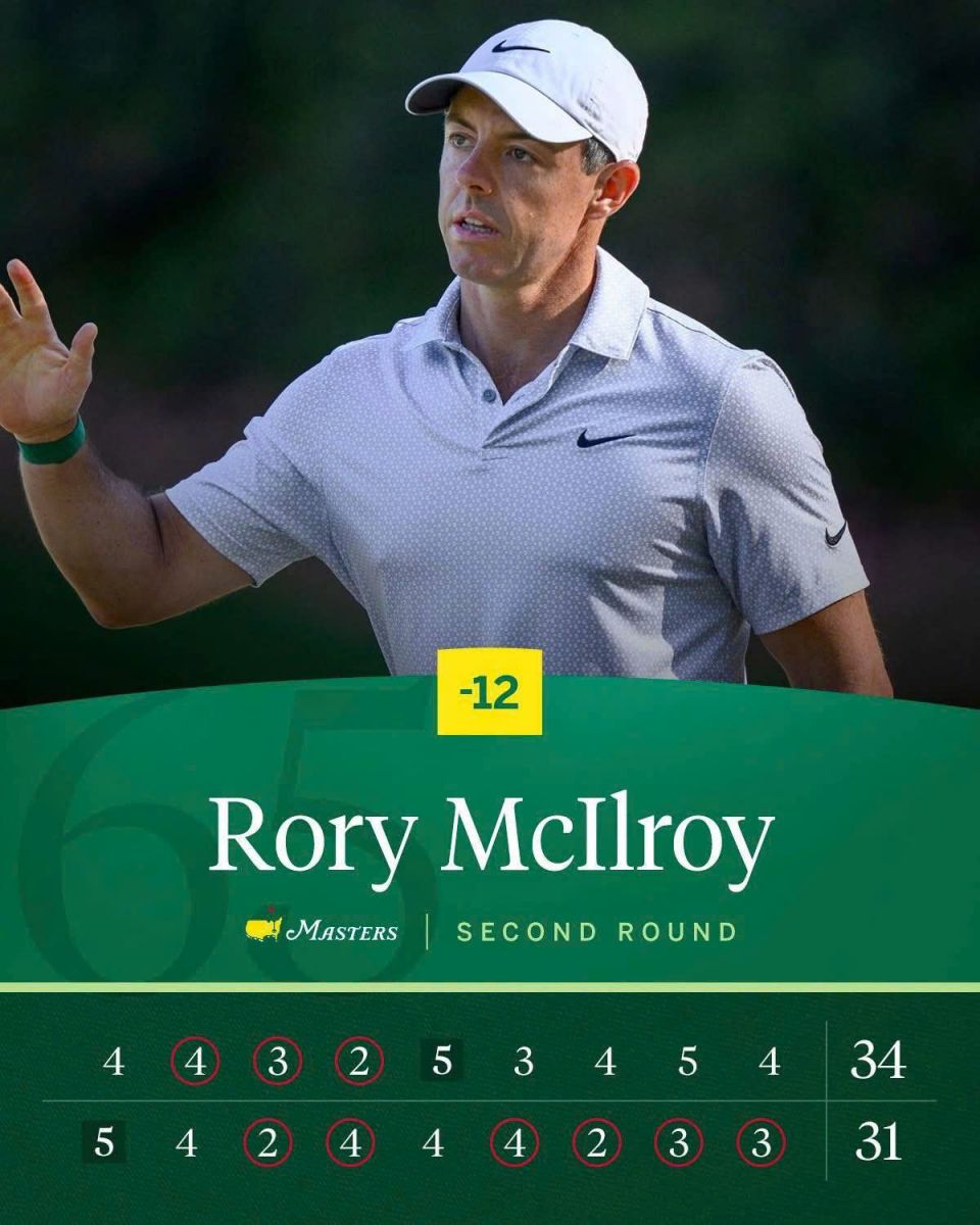 Tổng điểm -12 sau 36 hố giúp McIlroy tạo ra khoảng cách 6 gậy với nhóm bám đuổi – con số chưa từng xuất hiện trong lịch sử Masters sau hai vòng đấu.