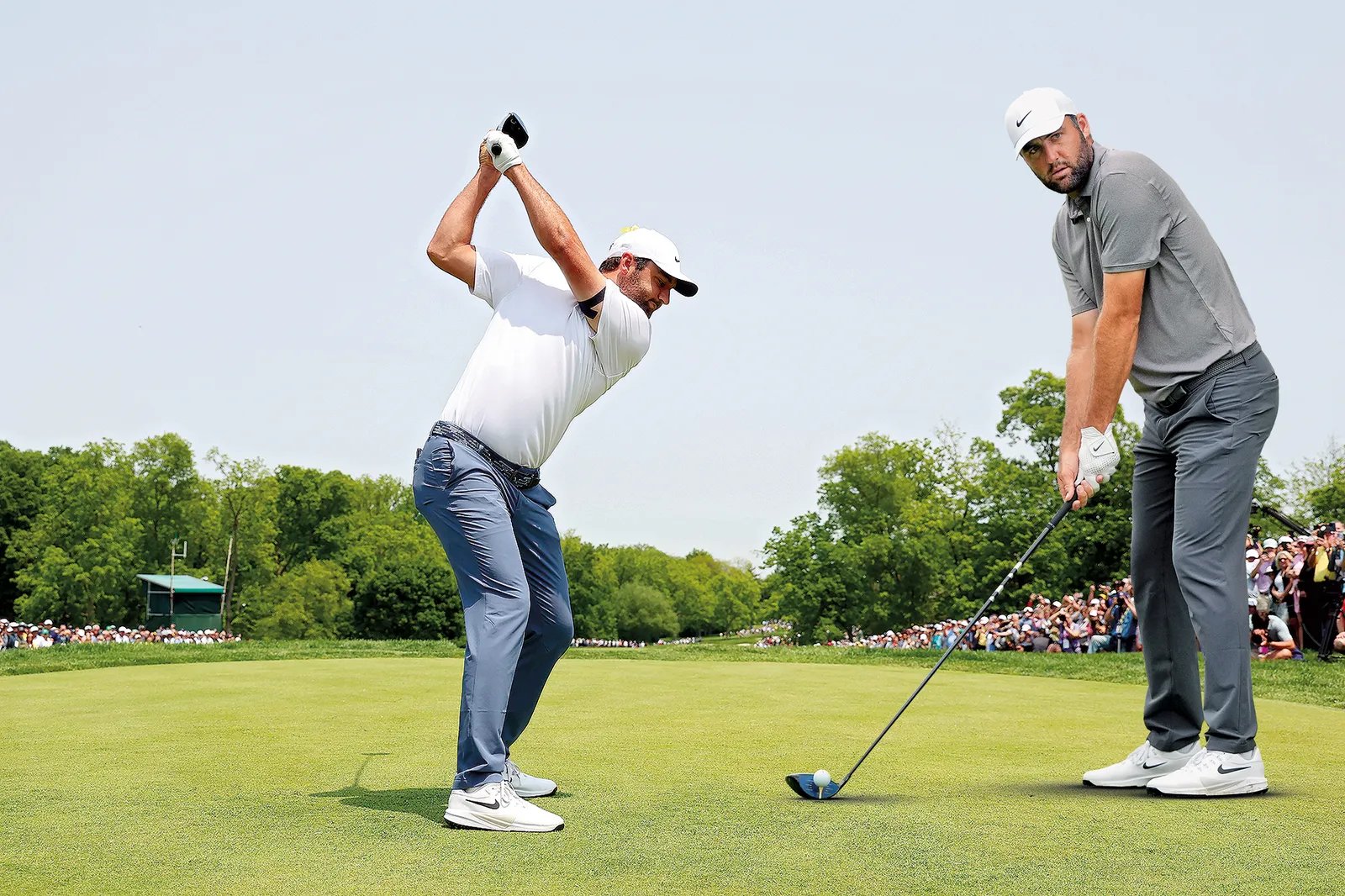 Một điểm cần học ở Scheffler: tư thế vận động mạnh mẽ – giống vận động viên tennis đang chờ trả giao bóng. Nhiều golfer nghiệp dư đứng quá thẳng chân, hạn chế khả năng xoay hông.